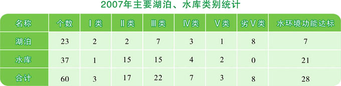 60个湖泊、水库中,有28个水质达到水环境功能要求,占总数的46.7%。