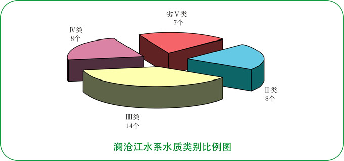 澜沧江水系水质轻度污染。23条主要河流37个监测断面中,达到Ⅱ类标准水质优断面占21.6%;达到Ⅲ类标准水质良好断面占37.9%;达到Ⅳ类标准水质轻度污染断面占21.6%;劣Ⅴ类标准水质重度污染断面占18.9%。